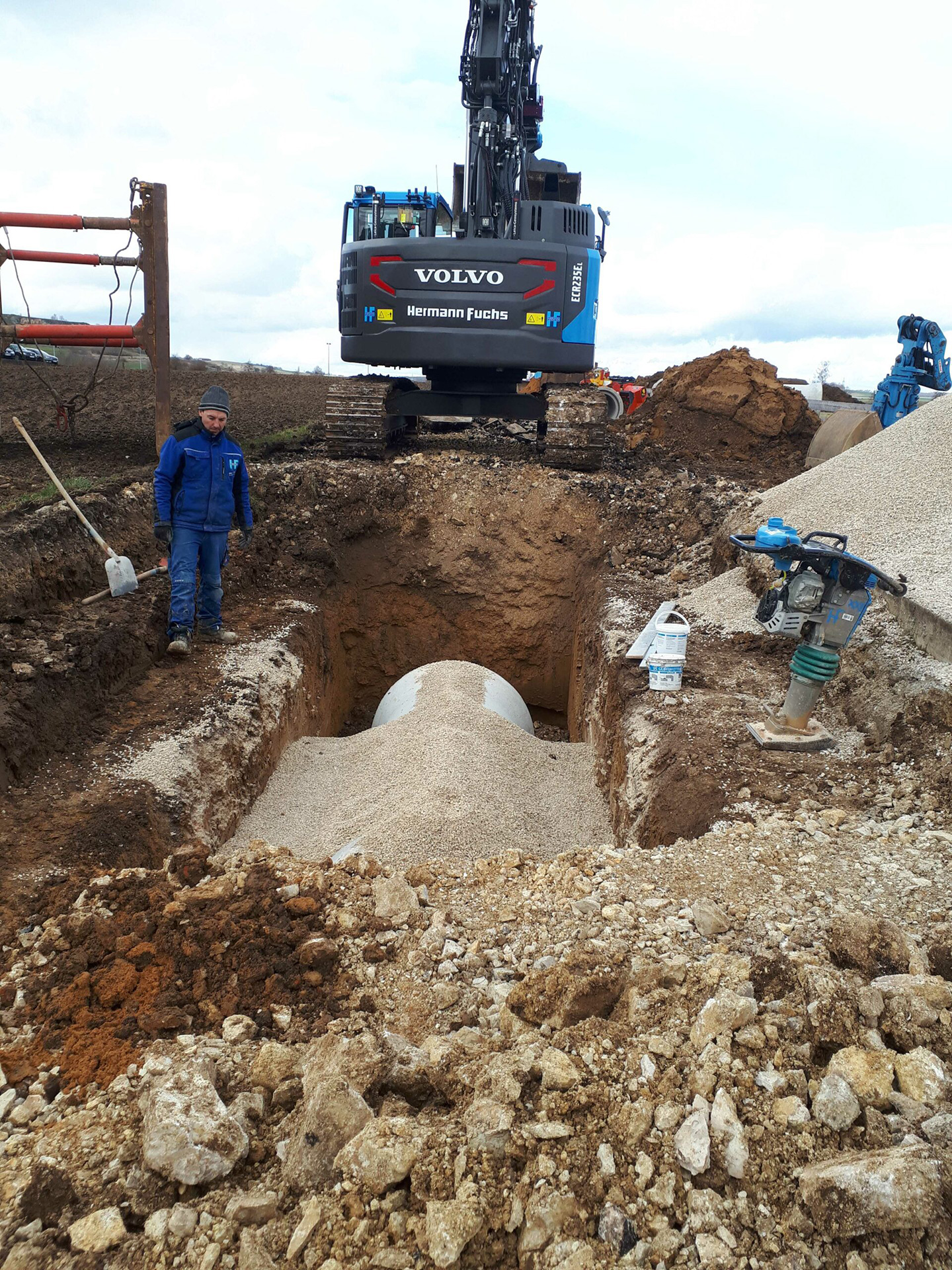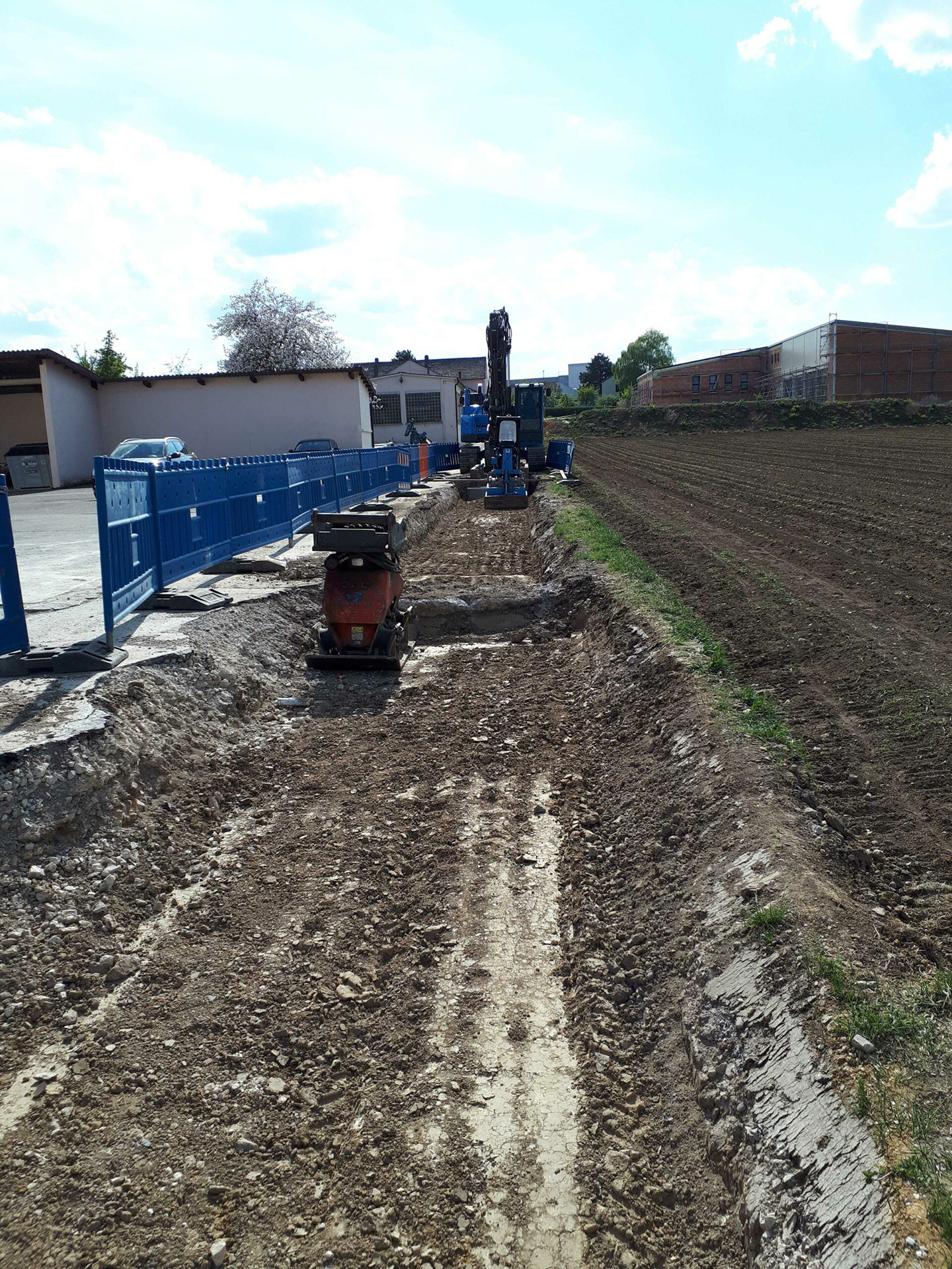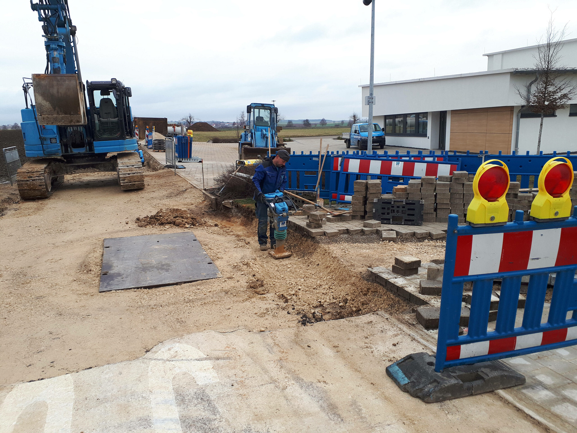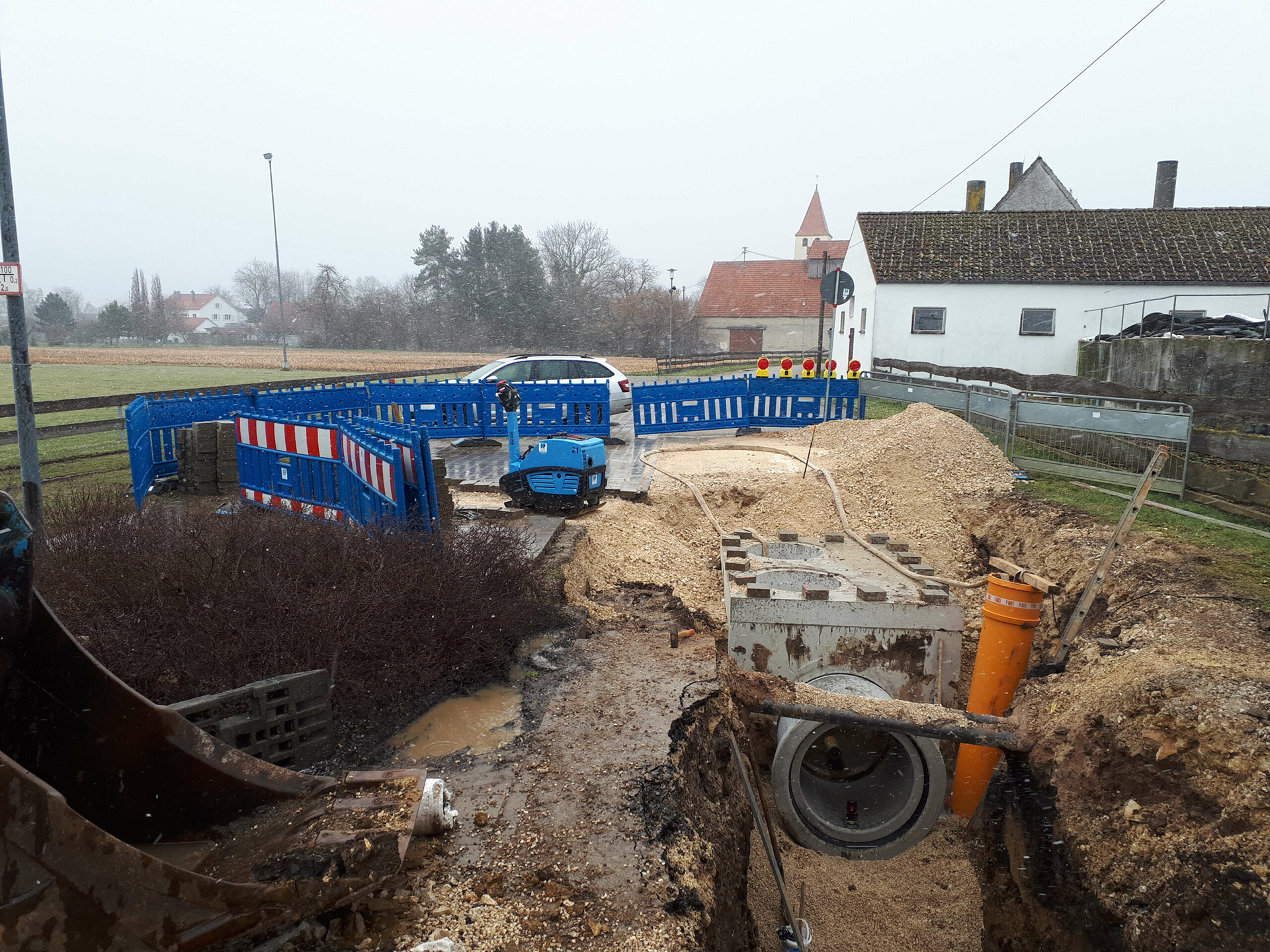 Entwässerung des Gewerbegebietes WertAm nordlichen Ortsrand von Pflaumloch entstand ein neues Gewerbegebiet mit ca. 1,6 Hektar. Unser Leistungsumfang beinhaltete die Herstellung eines Abwasserkanales aus Stahlbetonrohren und die zugehörige Wiederherstellung der Straßen.