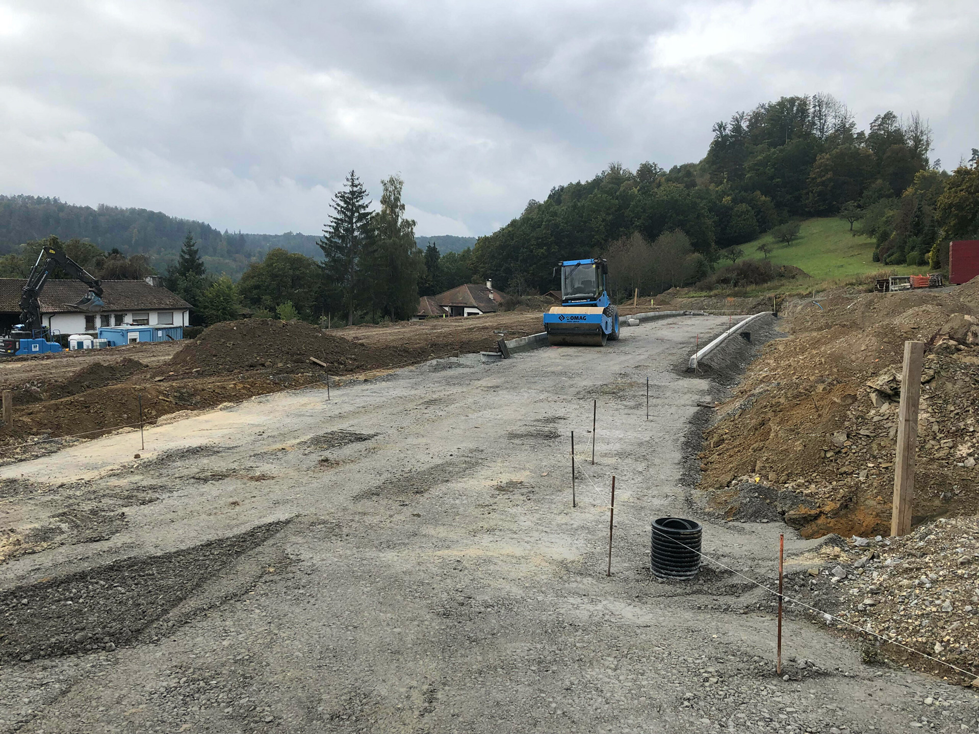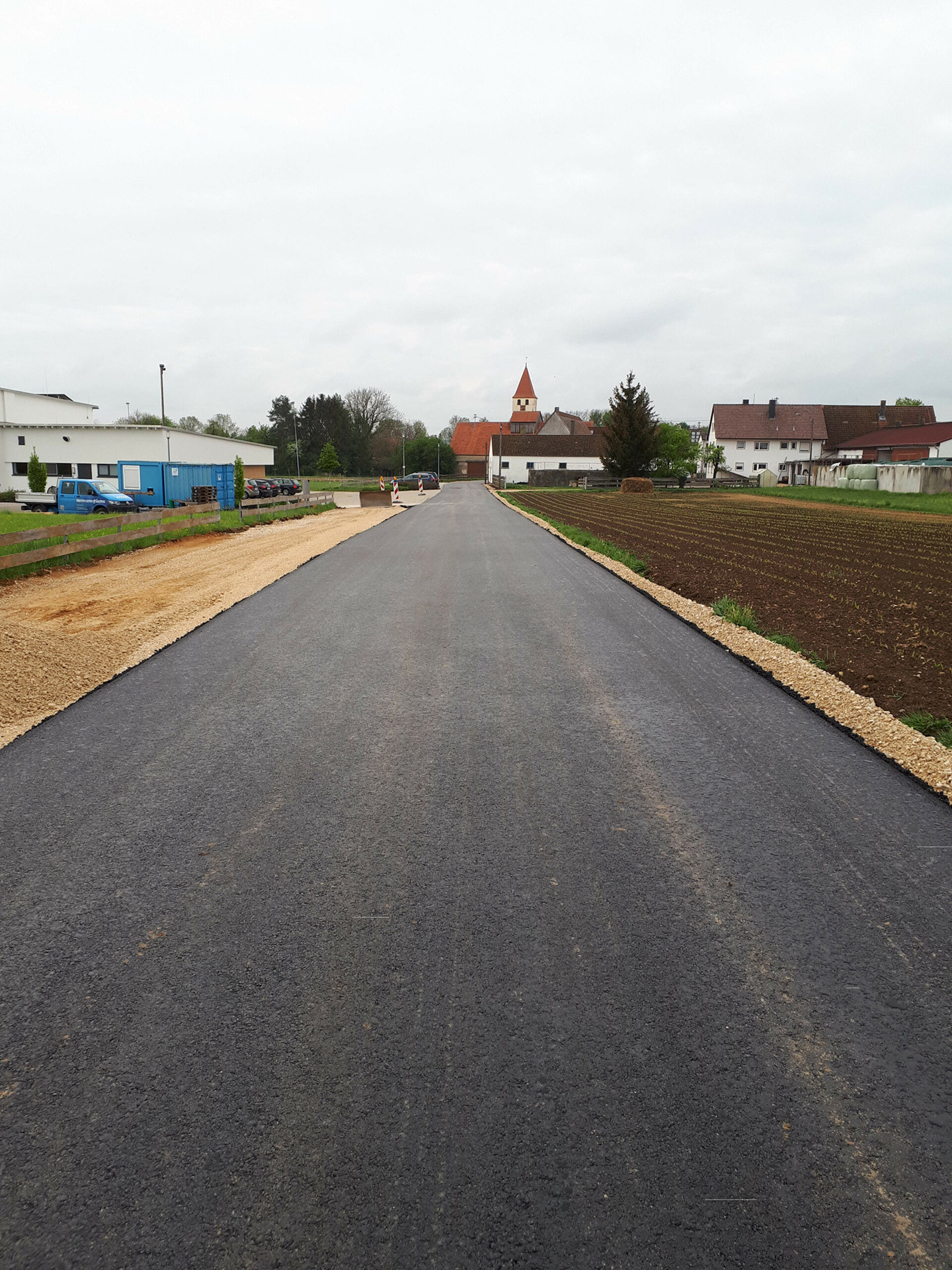 Bauherr:Gemeinde RiesbürgIngenieurbüro:B&P Beratende IngenieureZeitraum:Februar bis Mai 2020Massen:Schotter 1.750 toBindemittel ca. 85 to