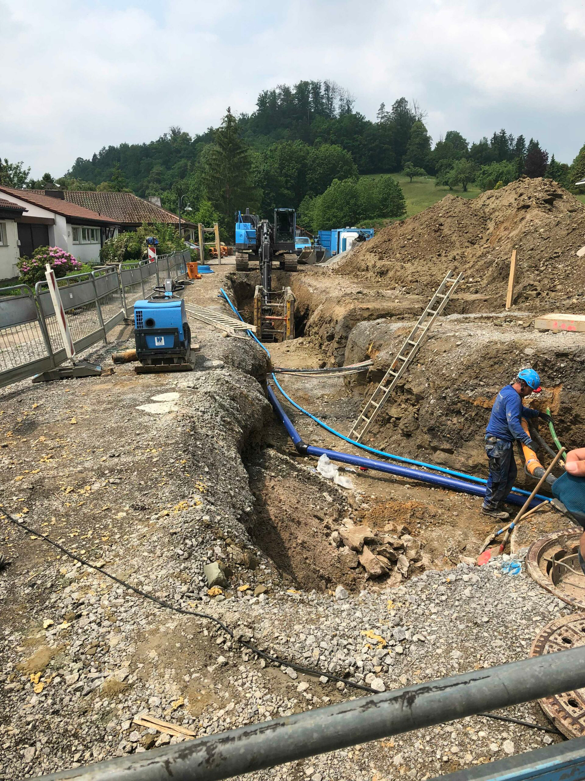 Unsere Tiefbau-Experten und unser moderner Maschinenpark gewährleisten eine sichere Umsetzung aller Projekte im Ver- und Entsorgungsbau.