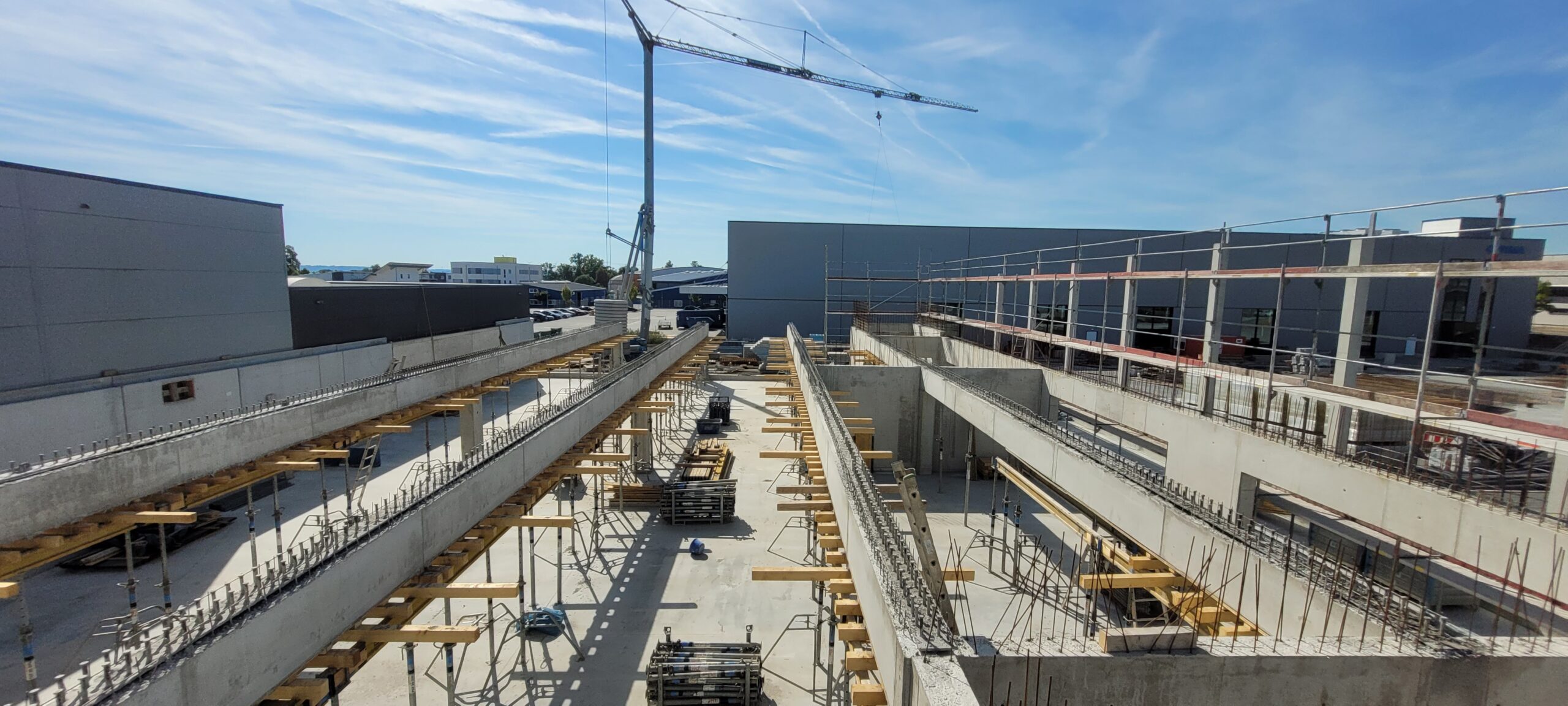 Industriebauten wie Lager- und Produktionshallen setzen wir mit langjähriger Erfahrung für namhafte Unternehmen um.